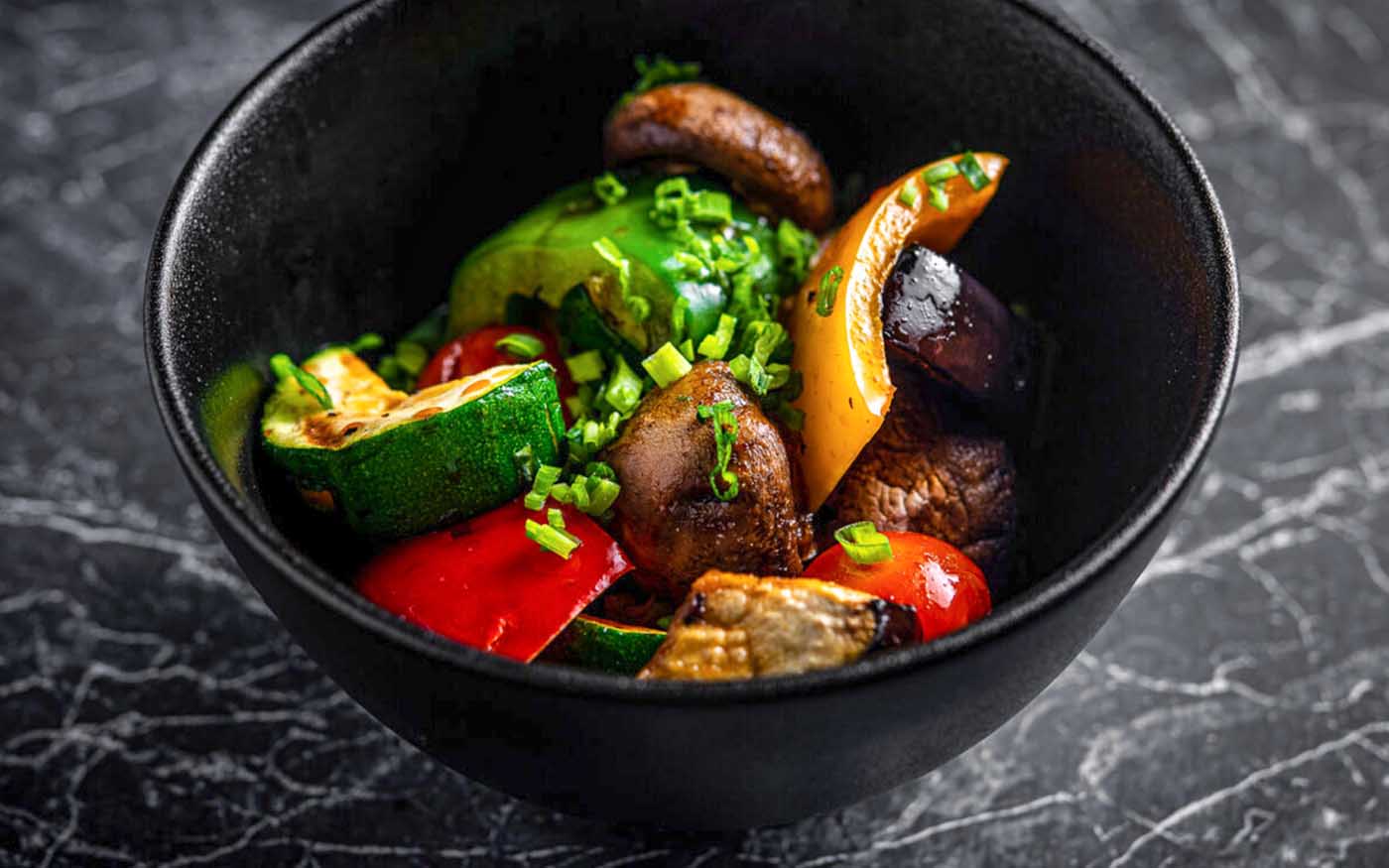 grillitud pardifilee, vürtsikas ploomiglasuur, keedetud köögiviljad kašupähklite, korea porgandite, minispinaadi, seesamiseemnetega