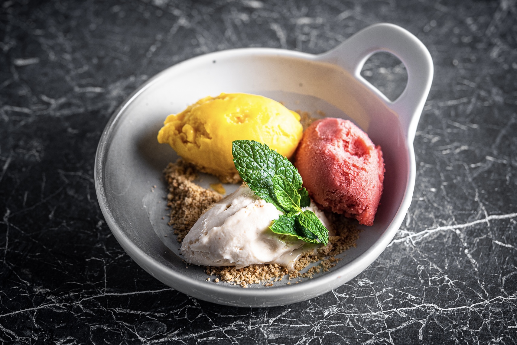 juustukook, papaia, pistaatsiapähklid, karamelliseeritud ananass, soolakaramell