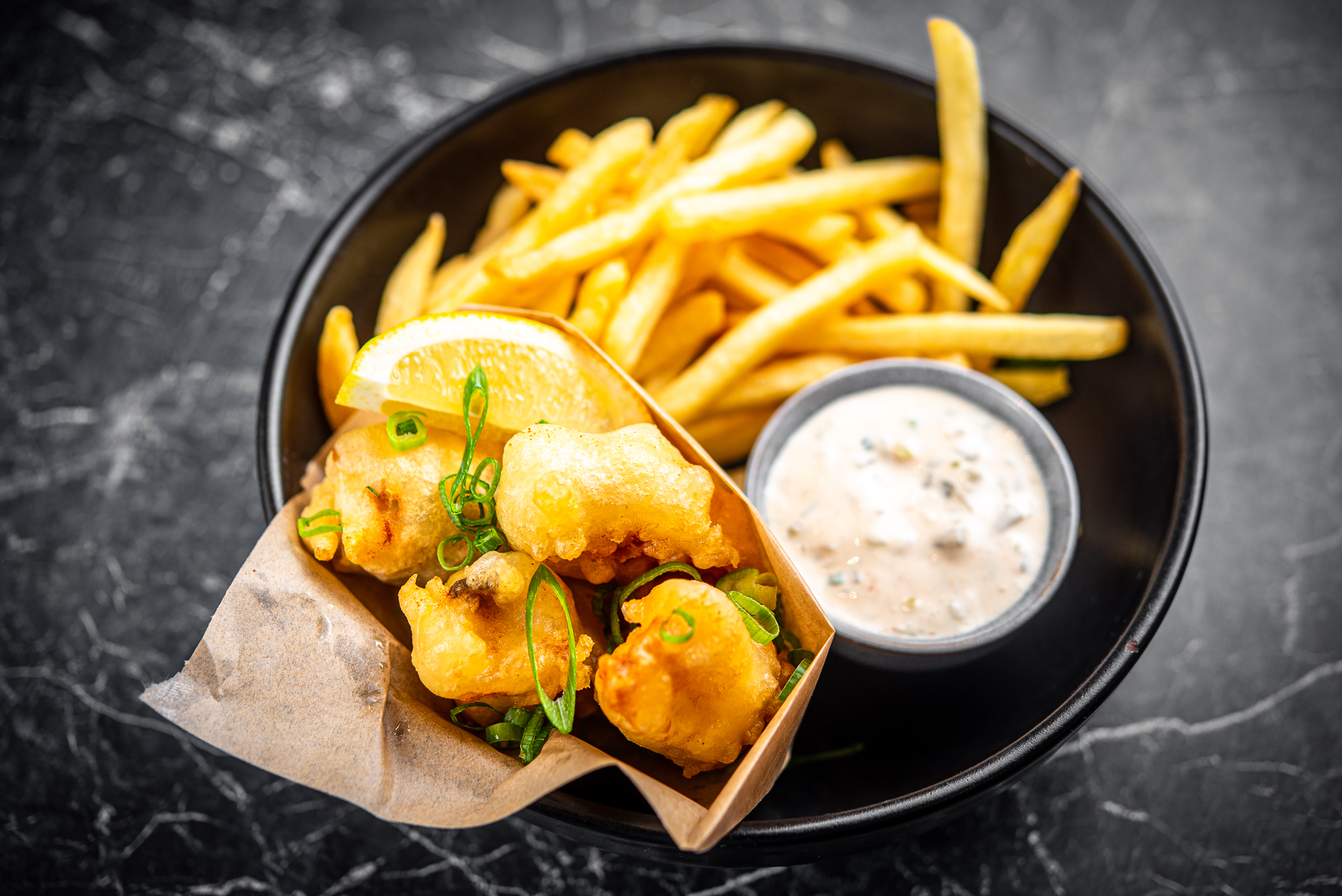 kalmaar, tempura, miso majonees